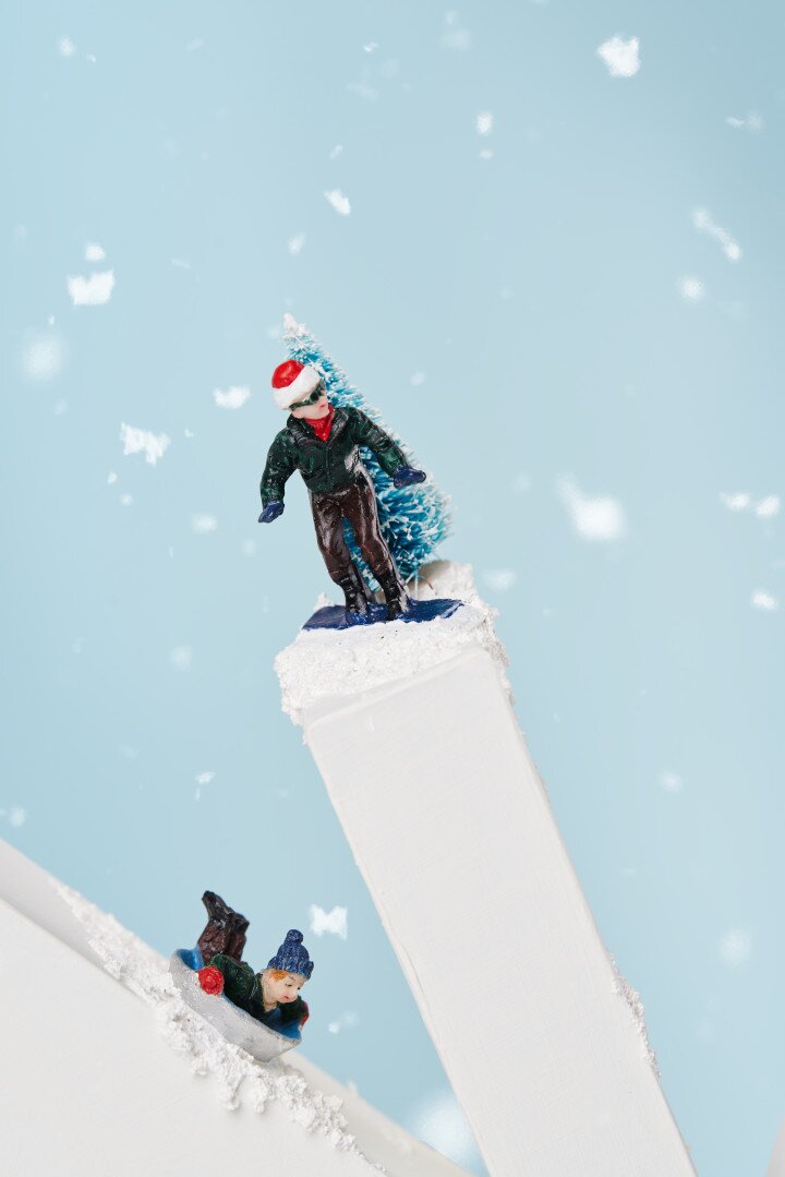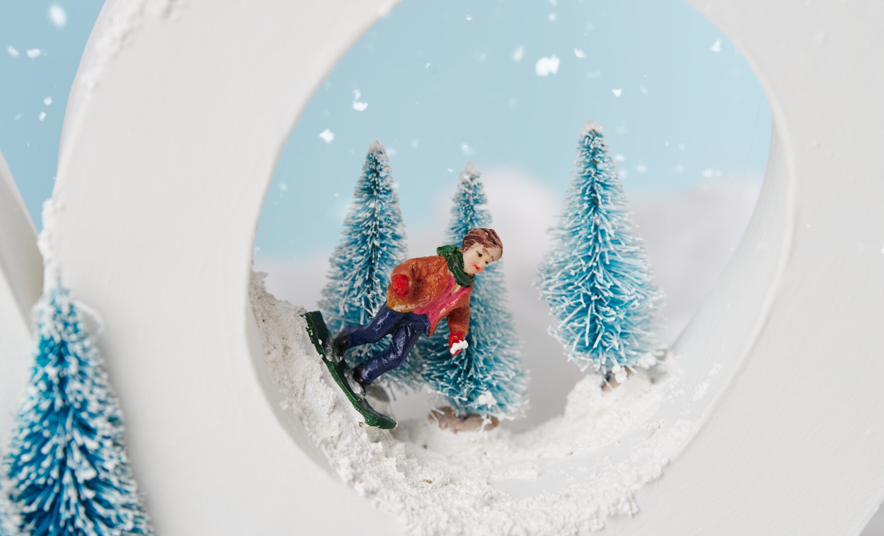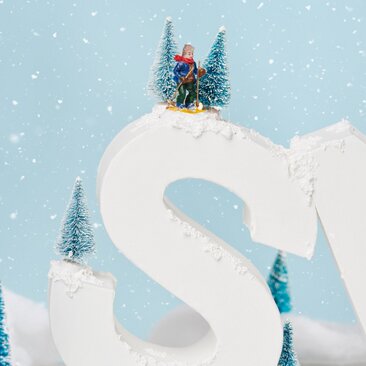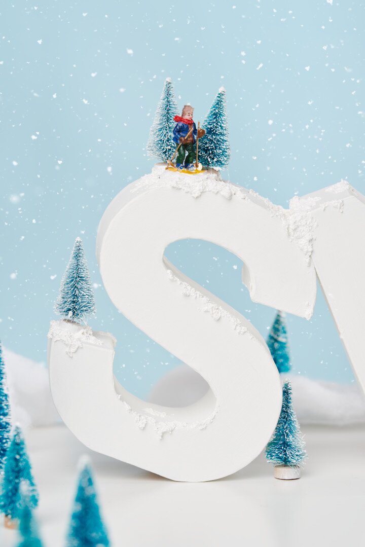 Teraz użyj pędzla lub narzędzia do modelowania, aby nałożyć dekoracyjny śnieg na litery, a także na przyklejone obszary figurek.