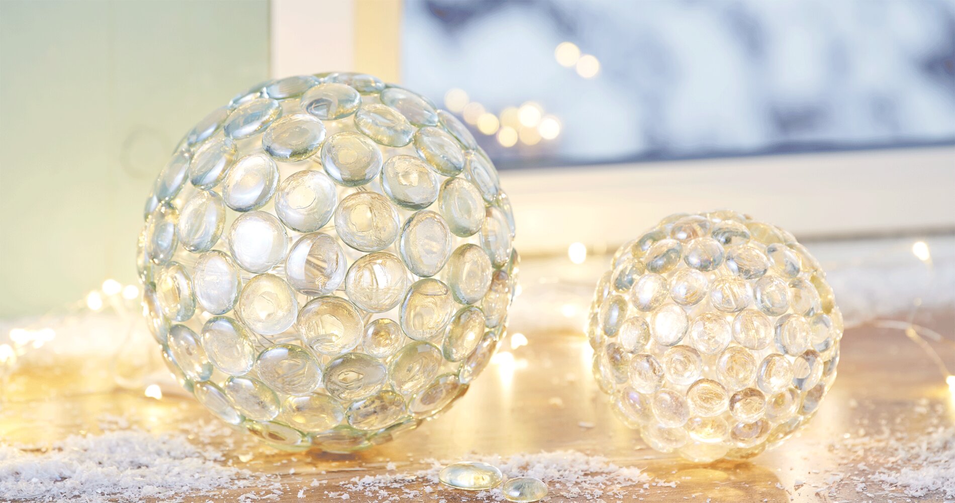 bombka z otworem, sznurek światełek, przezroczyste szklane mugolskie kamienie i klej. Przed przystąpieniem do tworzenia należy usunąć pętlę do zawieszania z akrylowej kuli. Najlepiej zrobić to za pomocą szczypiec. Sklej obie części kuli razem na szwie, aby kula nie otworzyła się przypadkowo podczas procesu tworzenia mozaiki.