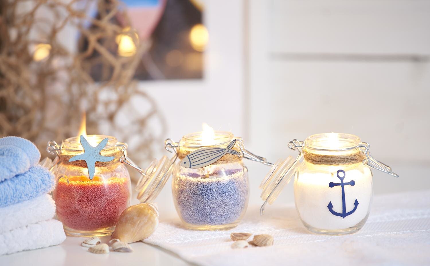 knot na środku i napełnij wiaderko piaskiem do świec w wybranym kolorze. Dzięki piaskowi świece będą palić się powoli i równomiernie.