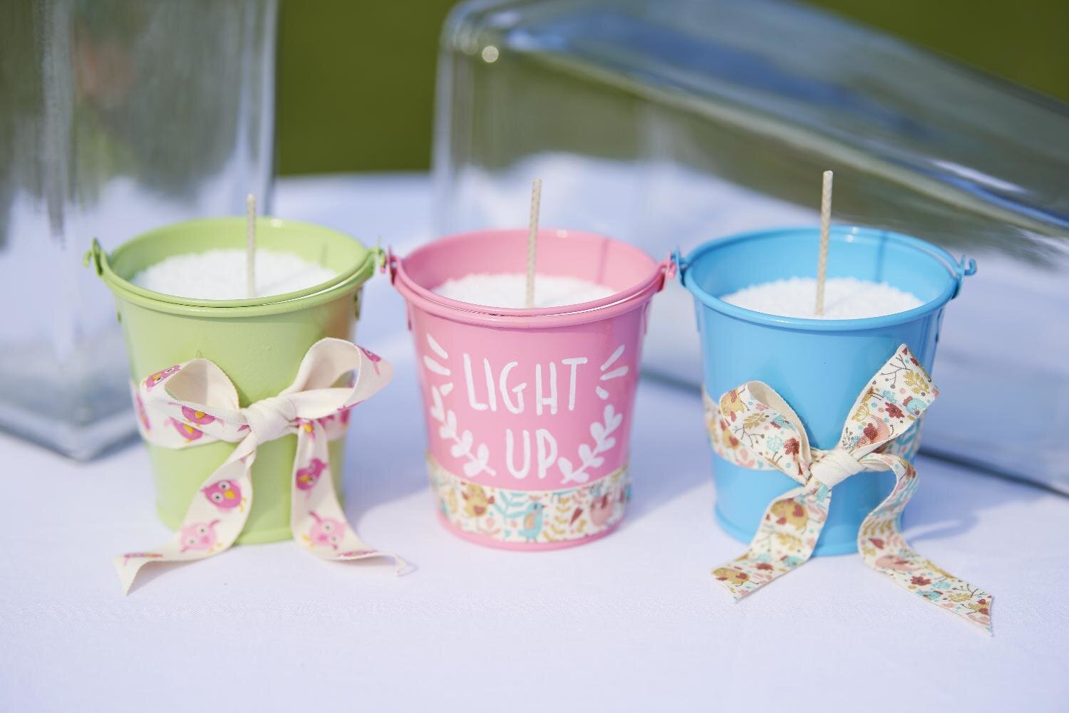 Teraz możesz udekorować wiaderka wstążkami, posypkami, ozdobnymi kwiatami i nie tylko.