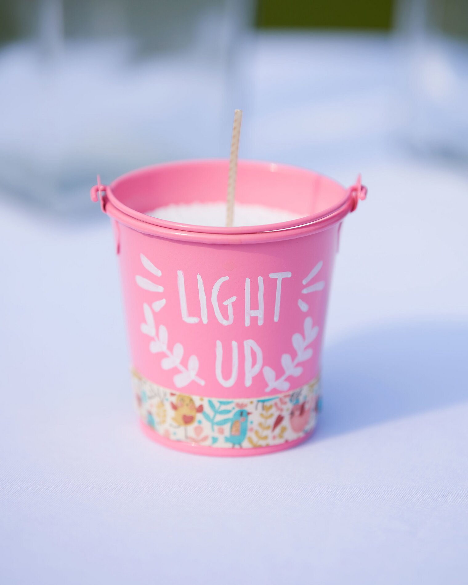 My oznaczyliśmy różowe wiaderko napisem "LIGHT UP" przy użyciu