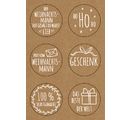 Samoprzylepne naklejki "Poczta bożonarodzeniowa" o średnicy ok. 4,8 cm. Opakowanie zawiera 24 naklejki z brązowym tłem i białymi napisami i dekoracjami.