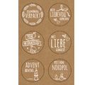 Proszę przykleić te piękne świąteczne naklejki na małych szklanych słoikach, torebkach na ciastka lub prezentach. Naklejki można też wykorzystać na przykład do projektowania kart, kalendarzy adwentowych i zawieszek do prezentów. Naklejki wyglądają szczególnie dobrze na ciemniejszych tłach. Dowcipne powiedzonka wywołają uśmiech na twarzy każdego odbiorcy.
