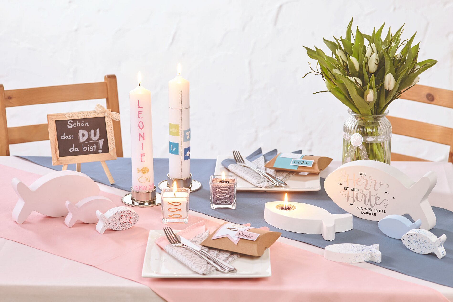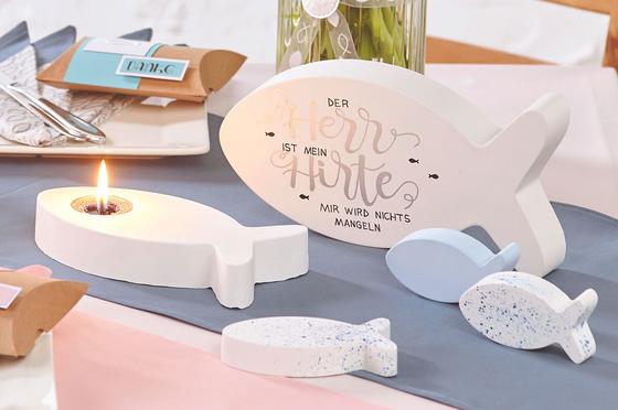Udekoruj zwykłe składane pudełka tekturą fotograficzną w pastelowych kolorach, akcesoriami "rybnymi" i ręcznie napisaną wiadomością (podziękowaniem).