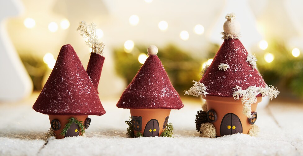 Domki można teraz dowolnie udekorować. Na przykład, przyklej