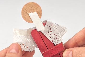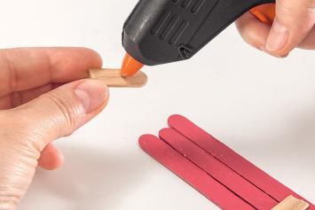 Ostrożnie przyklej drewniane patyczki za pomocą pistoletu do klejenia na gorąco.