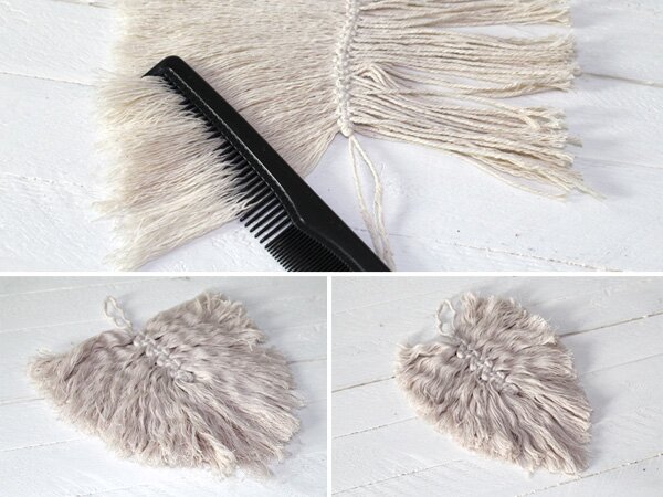 Po zawiązaniu piór należy je rozczesać. W zależności od materiału, inne narzędzia mogą być bardziej odpowiednie. Czynność tę należy wykonywać do momentu, gdy poszczególne odcinki przędzy przestaną być skręcone i staną się luźne i puszyste. Podczas czesania należy zawsze zaczynać od końca, a następnie powoli przesuwać się w kierunku środka. Zapobiegnie to nadmiernemu splątaniu poszczególnych nitek.