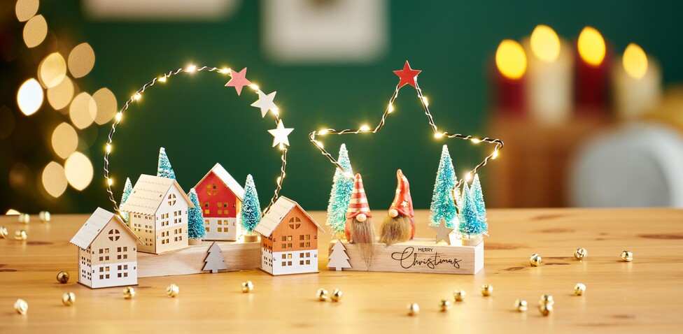 Teraz już prawie wszystko gotowe! Ułóż pomalowane domki razem z jodłami, krasnalami i innymi rozrzuconymi elementami na i obok dekoracyjnych podstaw. Stwórz magiczny świąteczny krajobraz, który wygląda przytulnie i zachęcająco. Upewnij się, że dekoracje są rozmieszczone równomiernie, aby wszystko wyglądało harmonijnie. Ten kreatywny pomysł pokazuje, jak łatwo można wyczarować zapierającą dech w piersiach dekorację świąteczną za pomocą pierścienia dekoracyjnego i odrobiny umiejętności. W mgnieniu oka stworzysz wyjątkową i spersonalizowaną dekorację, która z pewnością zwróci na siebie uwagę.