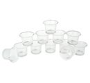 Słoiczki na podgrzewacze VBS XXL "Curved " w zestawie z 12 przezroczystymi szklanymi słoiczkami na podgrzewacze z zakrzywionym brzegiem. Średnica na górze wynosi ok. 6,3 cm, średnica na dole ok. 4,4 cm. Do szklanek pasują standardowe podgrzewacze.
