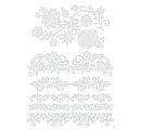 Szablon "Baroque borders" w formacie A4 przedstawia wspaniałe motywy do tworzenia eleganckich ramek dla tekstów i prostych motywów. Długość obramowania wynosi od ok. 17,8 cm do 19,8 cm, a szerokość od ok. 1,5 cm do 9,7 cm.