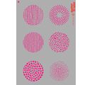 Szablon "Circles" w formacie A5 przedstawia sześć okręgów o różnych wzorach i średnicy ok. 5 cm każdy.