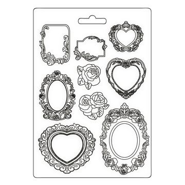 Szablon "Precious - Frames " nada Państwa dziełom wyjątkową oprawę! Za pomocą szablonu mogą Państwo ozdobić swoje projekty 11 różnymi ramkami i obramowaniami . Szablon jest wykonany z tworzywa sztucznego i ma wymiary 18 cm x 18 cm. Za pomocą szablonu można szybko i łatwo ozdobić swoje projekty. Do ozdabiania projektów można używać kolorów, past lub sprayów.