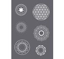 Samoprzylepny szablon "Motywy mandali" z raklą w formacie A5 przedstawia sześć wspaniałych motywów. Rozmiar motywu wynosi od ok. 3,9 do 5,9 cm.