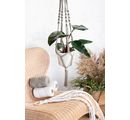 Sznurek do makramy ma długość ok. 198 m i grubość ok. 2 mm. Sznurek do makramy jest jednowarstwową przędzą do makramy i składa się w 80% z bawełny pochodzącej z recyklingu i w 20% z poliestru.