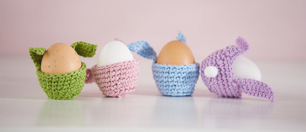 Do tego szydełkowego pomysłu potrzebna będzie wełna Catania. Z jednego kłębka włóczki można wykonać ok. 6 jajeczek na drutach w rozmiarze 4. Pracujesz dwoma nitkami jednocześnie. W ten sposób uzyskasz nie tylko wyjątkowo ładny, mocny i gruby ścieg, ale także lepiej ogrzejesz ugotowane jajka. Do wykonania króliczych uszu użyj drutów nr 3 i szydełkuj jedną nitką.