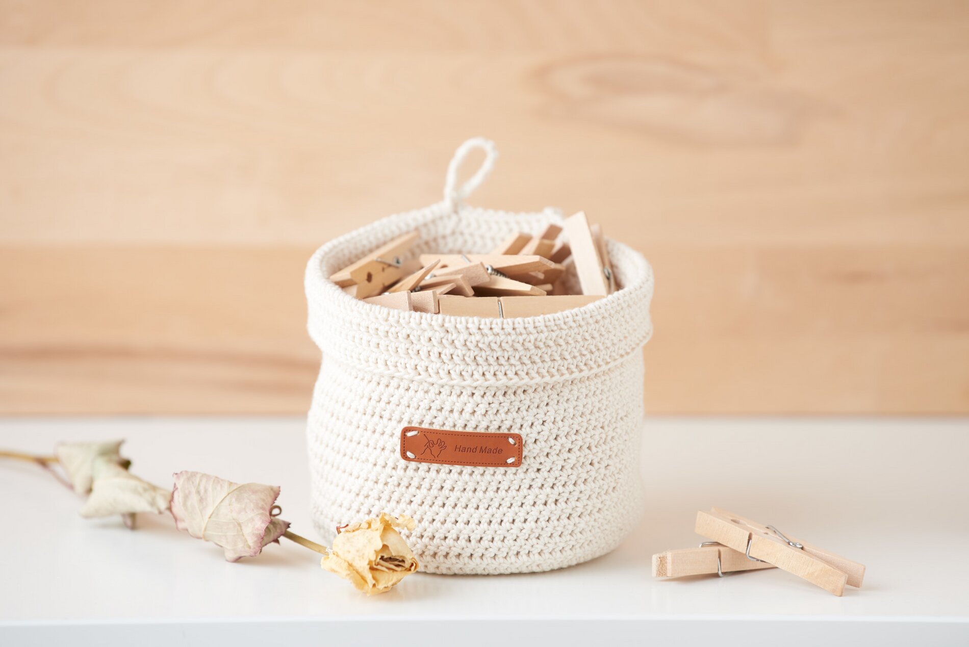 Dodatkowa wskazówka: Przyszyj ręcznie małą metkę na koszyku na przybory kuchenne jako specjalny akcent.