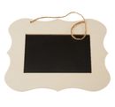 Ta praktyczna tablica kredowa VBS z drewnianą ramą ma wymiary ok. 20 cm x 15 cm i grubość 0,4 cm. Drewniana rama ma ok. 3,4 cm szerokości i jest wykonana w formie obramowania. Wycięty panel ma wymiary ok. 12,9 cm x 8 cm. Tabliczka ma jutową wst ążkę do zawieszenia. Wstążkę można indywidualnie skrócić.