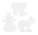 Motywy konia, kota i księżniczki można wykonać za pomocą tablic koralikowych Hama "Zwierzęta i księżniczka" w zestawie 3 sztuk.
