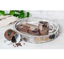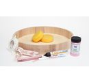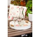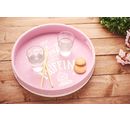 Ta drewniana taca ma Ø ok. 34 cm, Ø wewnętrzną ok. 32,5 cm i wysokość ok. 5 cm. Idealnie nadaje się do personalizacji, np. przy użyciu techniki serwetkowej lub decoupage. Nasza rada: Dlaczego nie pokryć Państwa tacy zimną glazurą? Lakier jest odporny na pierścienie, bezpieczny dla żywności i odporny na kwasy, chemikalia i zasady. Będą Państwo mogli cieszyć się swoją ozdobioną tacą przez długi czas.