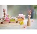 Wspaniała taca VBS z 5 drewnianymi doniczkami. Taca wraz z doniczkami ma wymiary ok. 35 cm długości x 7,5 cm szerokości x 6,2 cm wysokości. Wewnętrzna powierzchnia tacy ma wymiary ok. 33,2 cm x 5,8 cm i wysokość ok. 1,7 cm. 5 doniczek ma wymiary ok. 6,5 cm x 6,5 cm i biegnie stożkowo w dół, dzięki czemu powierzchnia podstawy wynosi ok. 4 cm x 4 cm. Wymiary wewnętrzne w górnej części wynoszą ok. 5 cm x 5 cm.