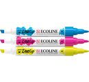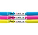 Talens Ecoline Duotip "Primary Colour Set" z 3 kolorami jako zestaw podstawowy, od którego mogą Państwo rozpocząć swoją kolekcję. Zawiera kolory 205 cytrynowy żółty, 337 magenta i 578 błękitny (cyjan). Doskonałe kolory oparte na barwniku i gumie arabskiej. Pisaki są wyposażone w 2 różne końcówki, wąską końcówkę kulkową i szerszą końcówkę klinową. Daje to swobodę rysowania cienkich i szerokich linii lub kolorowania większych obszarów.