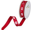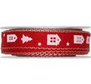 Robi się świątecznie! Ta czerwona wstążka z nadrukiem "Domy i drzewa" może być wykorzystana do dodania świątecznego akcentu do szerokiej gamy dekoracji. Wykonana w 81% z poliestru i w 19% z lnu wstążka ma ok. 15 mm szerokości i ok. 8 metrów długości. Białe motywy gwiazdek, domków i choinek mają wielkość ok. 0,3-1,5 cm. Kolor nie blaknie ani nie plami się, więc wstążka z nadrukiem nadaje się również do użytku na zewnątrz.
