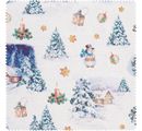 Tkanina bawełniana "White Christmas " ma gramaturę ok. 140 g/m² i szerokość ok. 150 cm. Wykonana jest w 100% z bawełny. Zimowe i świąteczne motywy zostały przedstawione na śnieżnobiałym tle.