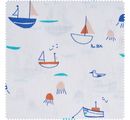 Wspaniała tkanina bawełniana "The Sea" o szerokości ok. 150 cm i gramaturze ok. 115 g/m². Tkaninę można prać w temperaturze 30°C w delikatnych warunkach i można jej używać z niemal każdą standardową domową maszyną do szycia.