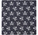 Świetna tkanina bawełniana "Piracka czaszka" na metry o szerokości ok. 150 cm. Tkanina jest wykonana w 100% z bawełny o gramaturze ok. 120 g/m², można ją prać w temperaturze 30°C w delikatnych warunkach. Motyw ma wymiary ok. 2 x 1,5 cm. Tkanina bawełniana jest wszechstronna i idealna dla początkujących.