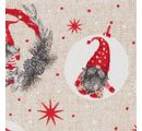 Proszę zanurzyć się w magicznym świecie skrzatów! Przekształć swój dom w zimową krainę czarów dzięki lnianej tkaninie dekoracyjnej "Skrzaty". Ta tkanina z motywem przedstawia urocze skrzaty osadzone w jodłowych wieńcach i jasnych okręgach, otoczone migoczącymi gwiazdami w różnych rozmiarach i kształtach.