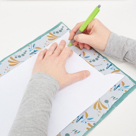 Rozłóż arkusz papieru do pieczenia na desce do prasowania. Powinien on być o kilka centymetrów większy ze wszystkich stron niż ścinki tkaniny.