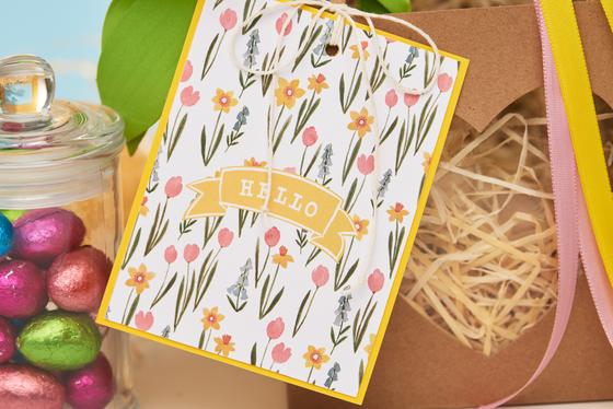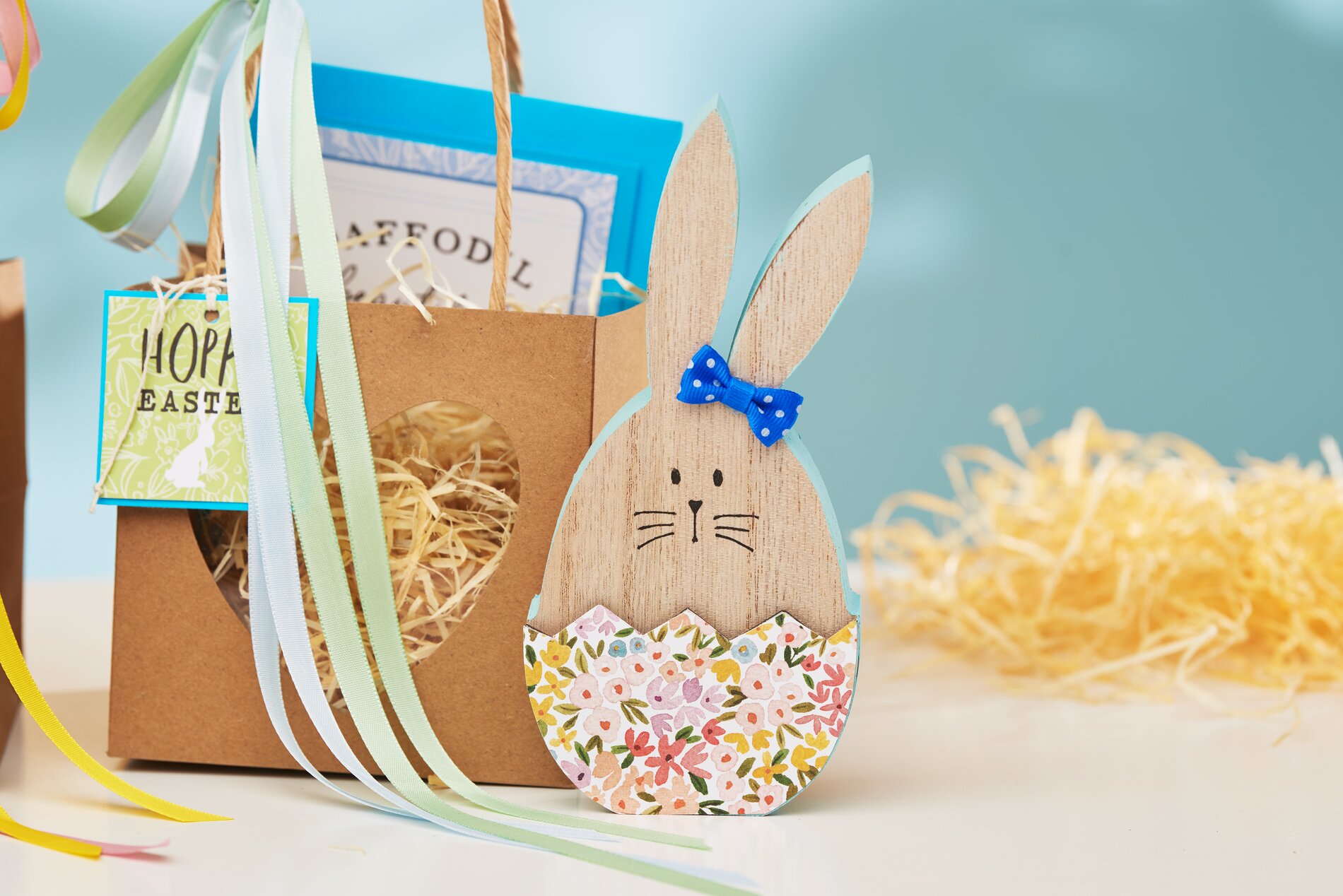 Teraz naklej papier na skorupkę jajka króliczka "Bonnie". Użyj wybranego papieru do scrapbookingu. Umieść "Bonnie" na papierze i przenieś kontur skorupki jajka ołówkiem. Ponieważ nie możesz jeszcze przenieść kolców, zostawimy wystarczająco dużo miejsca, aby dodać je później.