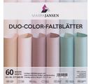 Szykowne składane arkusze "Duo-Color" w pudrowych odcieniach o wymiarach ok. 15 x 15 cm. W opakowaniu znajduje się 60 arkuszy papieru o gramaturze ok. 80 g/m². Składane arkusze są zadrukowane po obu stronach w różnych kolorach.