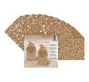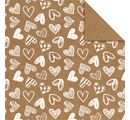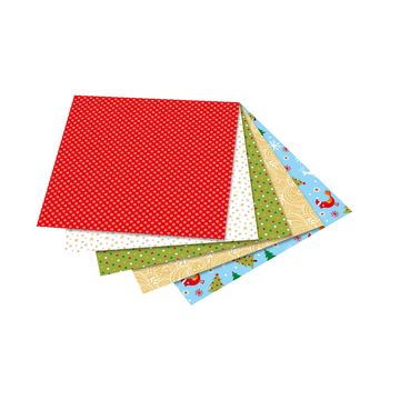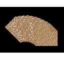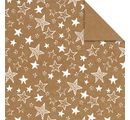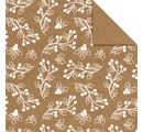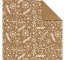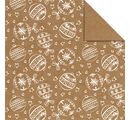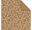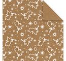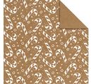 Piękne, składane arkusze "świątecznego papieru pakowego" o wymiarach ok. 15 x 15 cm, zawierające 100 arkuszy w 10 różnych wzorach. Arkusze mają gramaturę papieru 80 g/m². Wzór jest wydrukowany w kolorze białym po jednej stronie i dobrze kontrastuje z brązowym tłem.