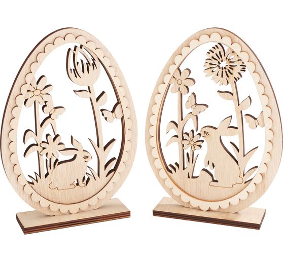 Zajączki wielkanocne można malować, przyklejać lub dekorować indywidualnie. Wyglądają one szczególnie pięknie jako dekoracja okna lub stołu. Aby uzyskać prosty wygląd, można pominąć zabawną ramkę i namalować oko na zajączku czarnym pisakiem. Te wszechstronne drewniane jajka są wykonane z fornirowanej sklejki i ozdobione z jednej strony, co daje Państwu swobodę dodawania własnych kreatywnych akcentów.