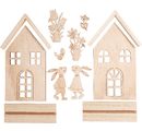 Dzięki 12 elementom, w tym szynom do zawieszania wykonanym z drewna MDF i pięknie zaprojektowanym motywom wykonanym z fornirowanej sklejki, mogą Państwo w mgnieniu oka stworzyć zachwycający domek. Ramiona króliczka i kwiaty są mocowane za pomocą kleju rzemieślniczego (nie dołączonego do zestawu) i nadają Państwa projektowi spersonalizowany charakter. Zestaw jest niepomalowany i ozdobiony z jednej strony, dzięki czemu mogą Państwo puścić wodze fantazji.