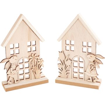 Złożenie ich razem jest dziecinnie proste: po udekorowaniu wystarczy włożyć poszczególne części do szyny i w razie potrzeby przymocować odrobiną kleju rzemieślniczego. Domek króliczka jest idealny jako wiosenna dekoracja stołu lub jako pięknie zaprojektowany prezent dla przyjaciół i rodziny.