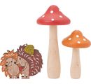 Czarujące grzyby i jeże VBS "Meena" to jesienny zestaw składający się z 3 sztuk. Jeże mają wymiary ok. 6 x 5,5 cm i grubość 4,5 mm, podczas gdy dwa grzybki mają wymiary 4,2 x 7,2 cm i 4,8 x 10,6 cm. Zestaw 3 sztuk jest wykonany z wysokiej jakości drewna i sklejki i pomalowany na kolory czerwony, pomarańczowy i brązowy .