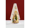 Duża jodła VBS z zimową scenerią i oświetleniem LED. Jodła ma wymiary ok. 19,3 x 8,5 x 41 cm. Materiał to wysokiej jakości sklejka , a jodła jest w pełni zmontowana. Z tyłu znajduje się miejsce na 2 baterie guzikowe CR2032.