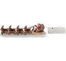 Teraz robi się świątecznie! Miniaturowe sanie Świętego Mikołaja VBS z 8 reniferami i ciepłym białym oświetleniem LED przyciągają wzrok w miniaturowych światach w okresie Bożego Narodzenia. Figurka z polyresinu ma wymiary ok. 23,0 x 5,5 x 6,0 cm i jest zasilana 2 bateriami AA (brak w zestawie). Światła można włączać i wyłączać za pomocą małego przełącznika w komorze baterii.