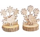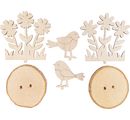 Drewniany motyw VBS na tarczach z kory "Ptaki i kwiaty" w zestawie 2 sztuk. Każdy motyw składa się z 3 części i jest łączony i mocowany za pomocą kleju rzemieślniczego (brak w zestawie). Motywy są wykonane z krążków kory i sklejki. Rozmiar wynosi około 8 x 8 x 12,3 cm.