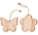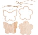 Przy średnicy 10 cm dla kwiatka i 10 x 8 cm dla motyla, są one idealne do malowania, do serwetek i techniki decoupage lub do ozdabiania małymi kamieniami mozaikowymi. Każda zawieszka zawiera drewnianą ramkę do przyklejenia (klej rzemieślniczy nie jest dołączony), biały koralik i małą wstążkę - prawie wszystko, czego potrzebujesz do następnego projektu DIY.