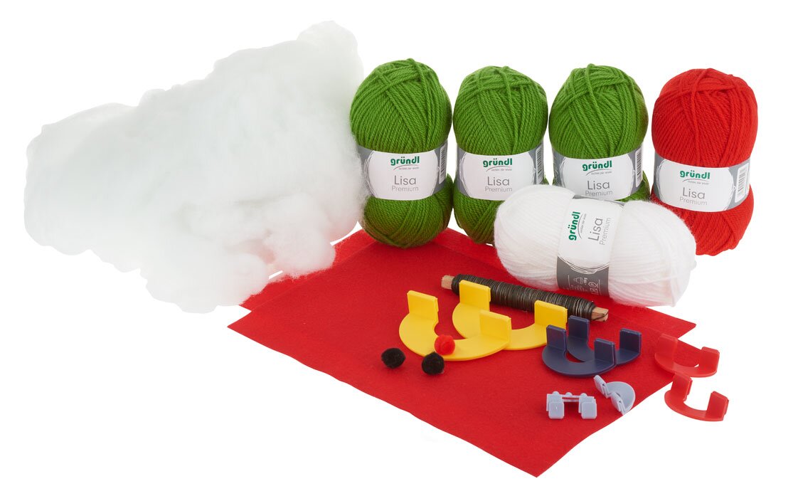 Do wykonania jodły Torge potrzebne są pompony wykonane z zielonej wełny w różnych rozmiarach: siedem średnich pomponów, sześć małych pomponów i pięć mini pomponów. Sposób wykonania tych pomponów został szczegółowo opisany w instrukcji obsługi zestawu do tworzenia pomponów. W następnym akapicie podsumowaliśmy jednak instrukcje dla Ciebie.