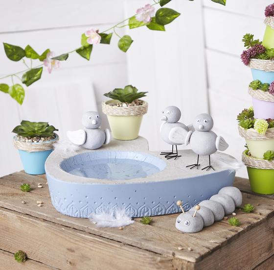 Kąpiel dla ptaków można pokolorować za pomocą sprayu Marabu do it.