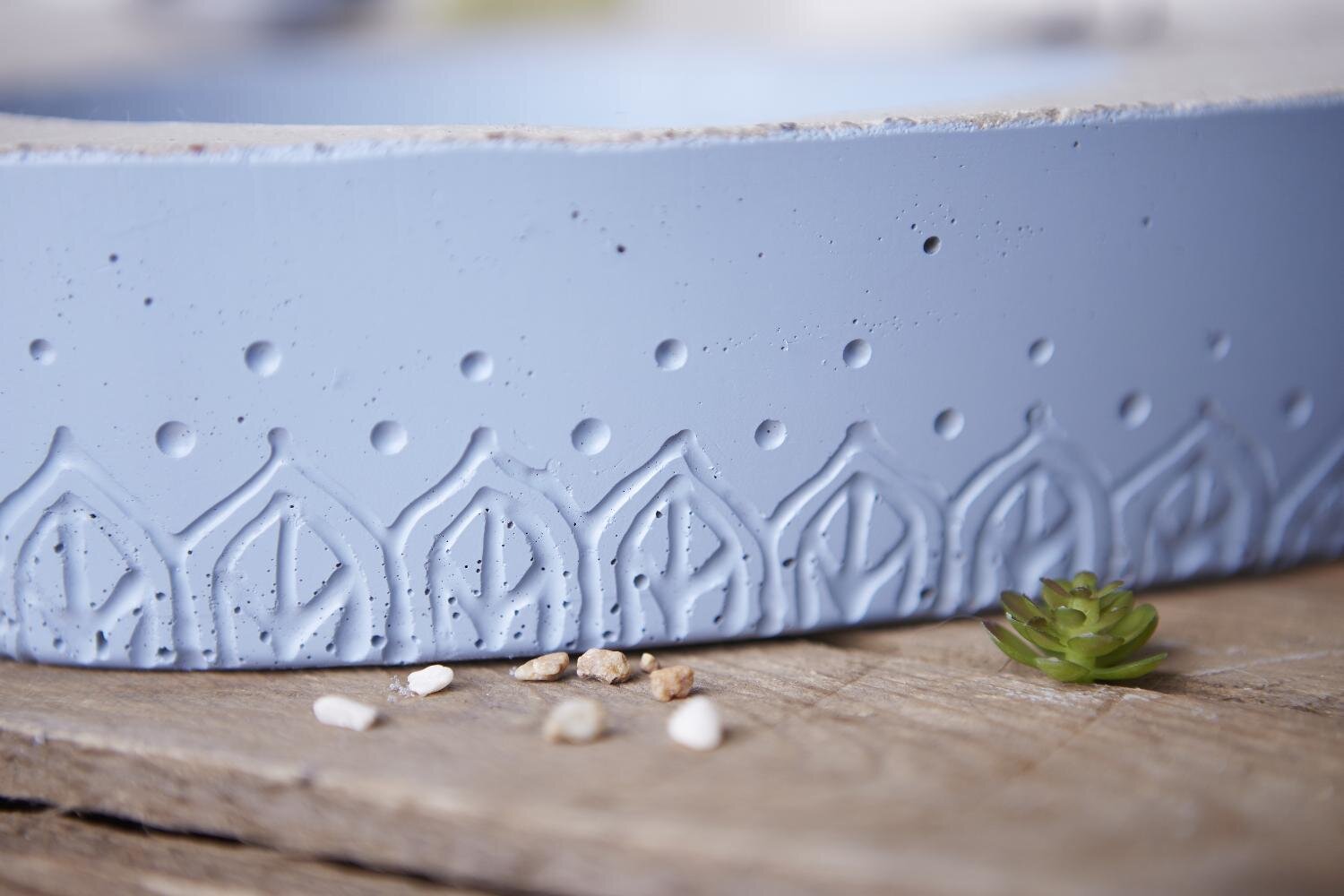 Po wyjęciu stwardniałej wanienki dla ptaków z formy, gumowate kontury betonowej wykładziny artystycznej można łatwo usunąć z utwardzonego betonu za pomocą spiczastego przedmiotu.