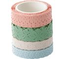 Ten dekor washi "Pastel Mix" składa się z 4 rolek o długości ok. 5 metrów. Harmonijnie dopasowane wzory mają szerokość ok. 10 mm i 15 mm.