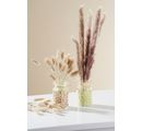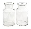 Ten ładny zestaw składa się z dwóch wazonów na butelki VBS o wysokości ok. 10 cm i średnicy ok. 5,5 cm. Otwór na górze ma średnicę ok. 3,5 cm, a pojemność wynosi ok. 150 ml. Kształt słoików przypomina nieco stare słoiki aptekarskie i idealnie nadaje się do dekoracji kwiatowych.