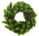Wysokiej jakości wieniec jodłowy VBS "Pina" o średnicy zewnętrznej ok. 30 cm i wewnętrznej ok. 12 cm. Plastikowe gałązki jodły są szczegółowe i nadają wieńcowi piękną gęstość. Gałązki jodły są przymocowane do styropianowego pierścienia.