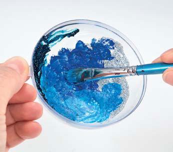 Przezroczysty żel do malowania VBS ma konsystencję pasty. W zależności od tego, jak mocny efekt brokatu chcesz uzyskać w akrylowych bombkach, po prostu wymieszaj brokat z żelem koloryzującym. Otrzymasz spersonalizowaną pastę brokatową, która jest bardzo łatwa do rozprowadzenia.