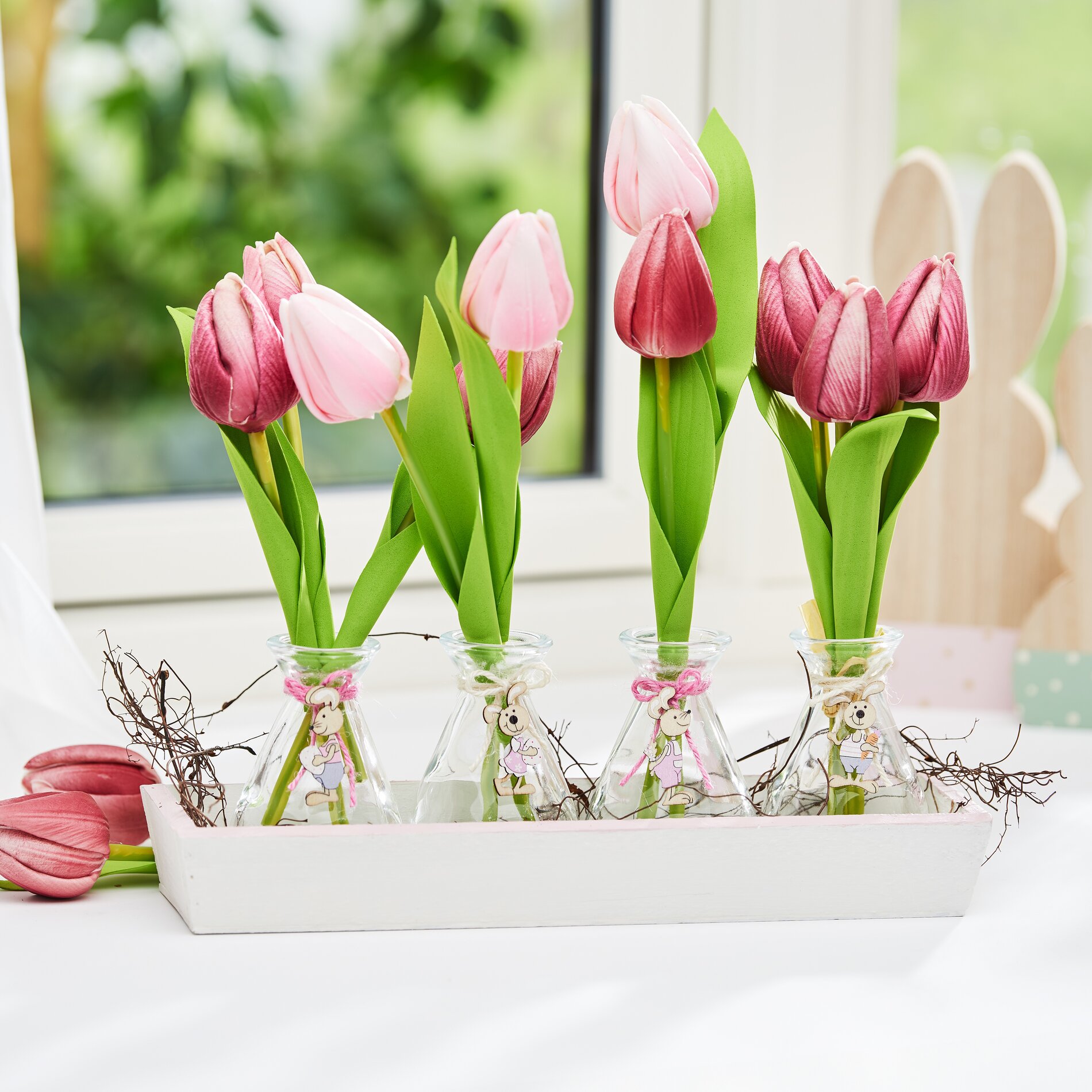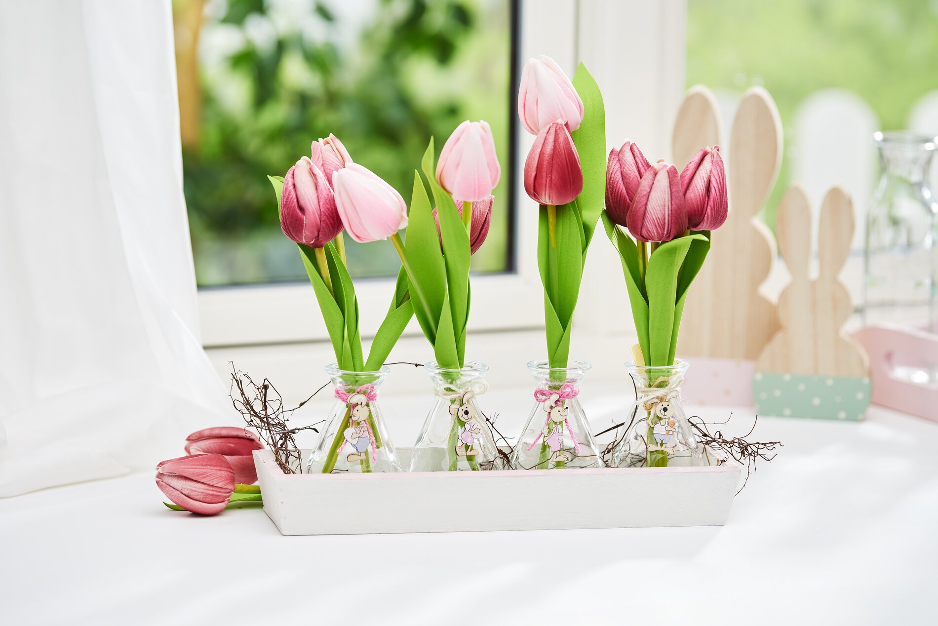 Przy odrobinie wysiłku możesz wyczarować w swoim domu małą dekorację stołu, która wprowadzi wiosnę do Twojego domu. A najlepsze jest to, że te sztuczne tulipany są dekoracyjne, ale nie więdną i można je zastąpić sezonowymi kwiatami w dowolnym momencie, dzięki czemu dekoracja stołu pozostanie ponadczasowo elegancka.